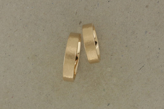 Schlichte kantige Eheringe mit Hammerschlag aus Roségold, recycelt, Fairtrade Gold