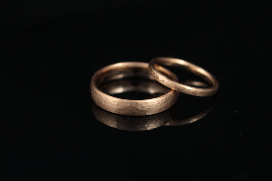 Eheringe mit fein gehämmerter Oberfläche in Rose und Rotgold