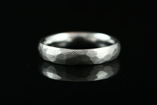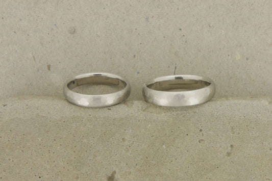 Gehämmerte breite Eheringe aus Silberweißgold in matt