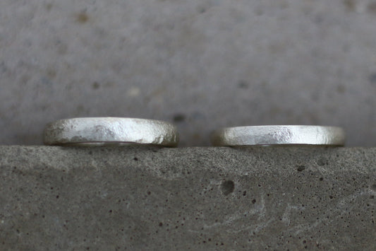 Eheringe Silber mit gehämmerter Oberfläche 3 mm 4mm Hamburg Trauringe Goldschmiede Ina Stehle Ina Miret Struktur