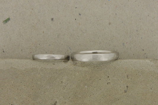 Schmale Eheringe Weißgold, gehämmert zart Trauringe Palladium gerundet rund oval gewölbt klassisch Hamburg Goldschmied Ina Miret