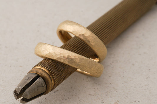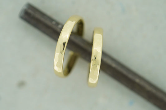 Roségold und Gelbgold, recyceltes Gold, gehämmerte Eheringe handgefertigt