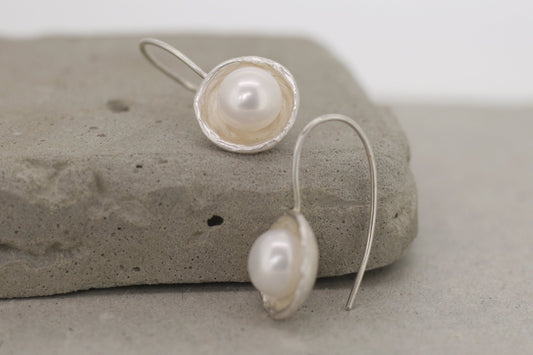 Ohrhänger Schalen aus Silber mit Perlen | unregelmäßig