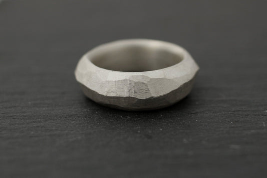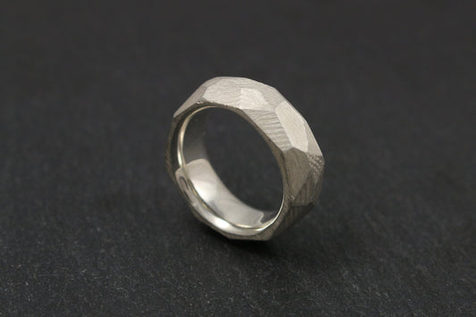 Silberring | Männerring | kantige und massiv | Hammerschlagoptik