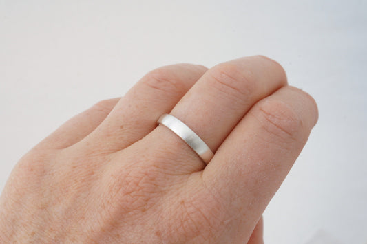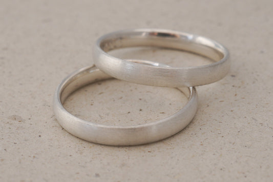 Trauringe in Sterlingsilber oval Eheringe Hamburg Goldschmiede 3 mm mattIna Stehle Ina Miret gerundet klassische Form schmal schlicht