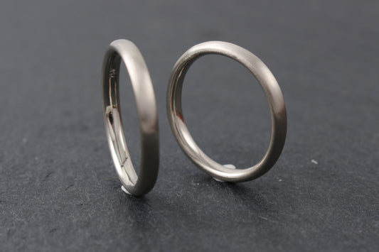 Schmale Eheringe Weißgold, gehämmert zart Trauringe Palladium gerundet rund oval gewölbt klassisch Hamburg Goldschmied Ina Miret