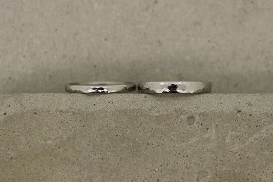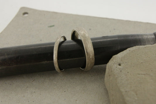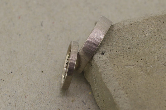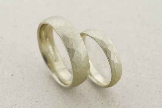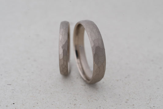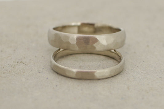 Gehämmerte breite Eheringe aus Silberweißgold in matt