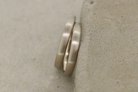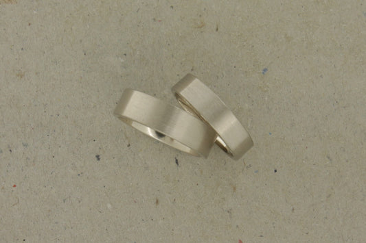 Kantige matte Eheringe aus nachhaltigem Weißgold